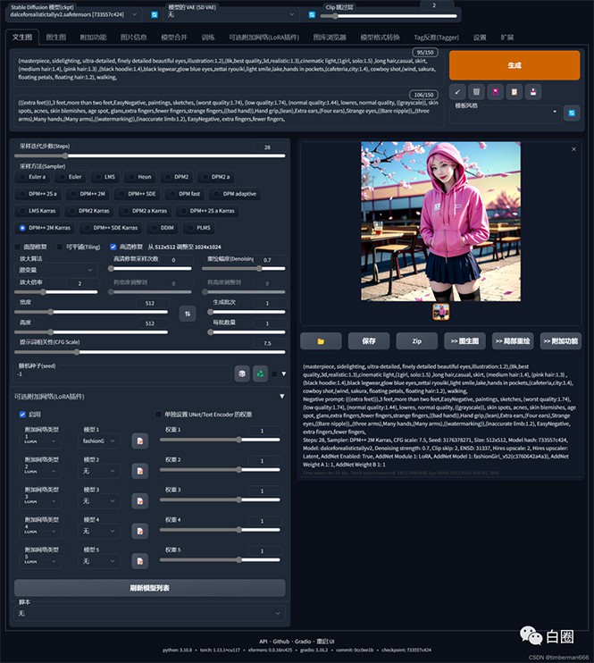 这篇标题我考虑了半天也不知道怎么写,因为这个技术方法用途很高,我先用简单的描述一下这篇文章的内容: 这种用AI做出来的美女是不是很多人看了比较上头? 首先这种ai绘画不是那种小程序什么的一键生成的东西,需要用到专业的AI绘图工具去制作,制作过程不仅又需要大量的专业知识,还需要电脑配置很高才可以制作,显卡要求大于6G这个门槛估计很多人不是有需求不会尝试做这个东西。 大家可以搜索AI 绘画Stable Diffusion软件,B站也有很详细的使用教程,详细你看不到10分钟就会自行劝退。图片 看到这么多代码基本都会劝退。 但是我研究出一套不需要配置,并且不需要学习类似编程语言的制作代码,用一套简单的思路小白也可以做出属于我们自己版权的虚拟人物。 这个技术可以半个小时就学会别人sd软件3个月的技术,5分钟产一个图。 那么这种虚拟人物有什么用?怎么变现? 其实用途很多,很多根本没有人想到或者去操作,有人拿这种头像去引流,有人去抖音挂壁纸小程序,还有人开网店专门帮别人设计,电商领域运用更多,有人拿来当虚拟ip,带服装,或者帮别人当虚拟模特一单几百利润。 这个技术包独家,并且不需要配置,不需要复杂的知识,理解思路就可以让你变成AI虚拟美女绘图大师。 直接说方法: 下载地址: